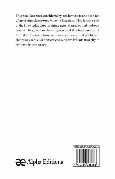 This book has been considered by academicians and scholars of great significance and value to literature. This forms a part of the knowledge base for future generations. So that the book is never forgotten we have represented this book in a print format as the same form as it was originally first published. Hence any marks or annotations seen are left intentionally to preserve its true nature.