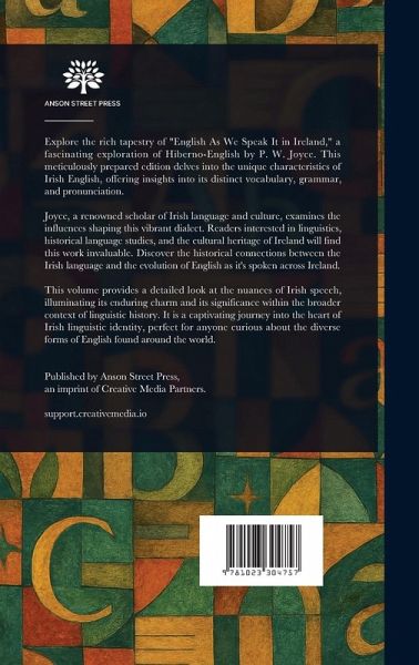 Explore the rich tapestry of "English As We Speak It in Ireland," a fascinating exploration of Hiberno-English by P. W. Joyce. This meticulously prepared edition delves into the unique characteristics of Irish English, offering insights into its distinct vocabulary, grammar, and pronunciation. Joyce, a renowned scholar of Irish language and culture, examines the influences shaping this vibrant dialect. Readers interested in linguistics, historical language studies, and the cultural heritage of Ireland will find this work invaluable. Discover the historical connections between the Irish language and the evolution of English as it's spoken across Ireland. This volume provides a detailed look at the nuances of Irish speech, illuminating its enduring charm and its significance within the broader context of linguistic history. It is a captivating journey into the heart of Irish linguistic identity, perfect for anyone curious about the diverse forms of English found around the world. This work has been selected by scholars as being culturally important, and is part of the knowledge base of civilization as we know it. This work is in the public domain in the United States of America, and possibly other nations. Within the United States, you may freely copy and distribute this work, as no entity (individual or corporate) has a copyright on the body of the work. Scholars believe, and we concur, that this work is important enough to be preserved, reproduced, and made generally available to the public. We appreciate your support of the preservation process, and thank you for being an important part of keeping this knowledge alive and relevant.