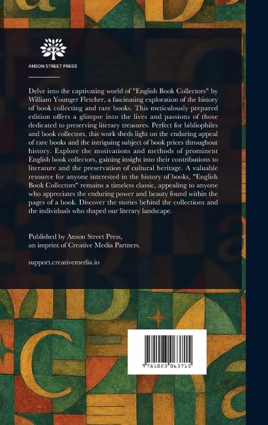Delve into the captivating world of "English Book Collectors" by William Younger Fletcher, a fascinating exploration of the history of book collecting and rare books. This meticulously prepared edition offers a glimpse into the lives and passions of those dedicated to preserving literary treasures. Perfect for bibliophiles and book collectors, this work sheds light on the enduring appeal of rare books and the intriguing subject of book prices throughout history. Explore the motivations and methods of prominent English book collectors, gaining insight into their contributions to literature and the preservation of cultural heritage. A valuable resource for anyone interested in the history of books, "English Book Collectors" remains a timeless classic, appealing to anyone who appreciates the enduring power and beauty found within the pages of a book. Discover the stories behind the collections and the individuals who shaped our literary landscape. This work has been selected by scholars as being culturally important, and is part of the knowledge base of civilization as we know it. This work is in the public domain in the United States of America, and possibly other nations. Within the United States, you may freely copy and distribute this work, as no entity (individual or corporate) has a copyright on the body of the work. Scholars believe, and we concur, that this work is important enough to be preserved, reproduced, and made generally available to the public. We appreciate your support of the preservation process, and thank you for being an important part of keeping this knowledge alive and relevant.