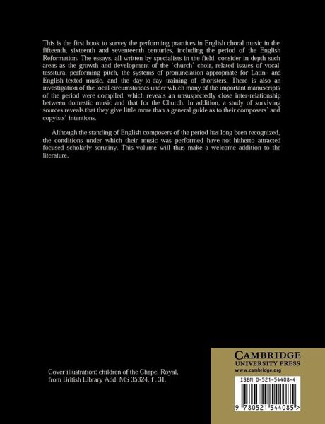 These nine essays consider for the first time the day-to-day performing practice of English composers of choral music of the period 1440 1650.