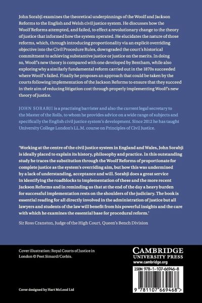 John Sorabji examines the theoretical underpinnings of the Woolf and Jackson reforms to the English and Welsh civil justice system. He discusses how the Woolf reforms attempted, and failed, to effect a revolutionary change to the theory of justice that informed how the system operated. It elucidates the nature of those reforms, which through introducing proportionality via an explicit overriding objective into the Civil Procedure Rules, downgraded the court's historic commitment to achieving substantive justice or justice on the merits. In doing so, Woolf's new theory is compared with one developed by Bentham, while also exploring why a similarly fundamental reform carried out in the 1870s succeeded where Woolf's failed. It finally proposes an approach that could be taken by the courts following implementation of the Jackson reforms to ensure that they succeed in their aim of reducing litigation cost through properly implementing Woolf's new theory of justice.
