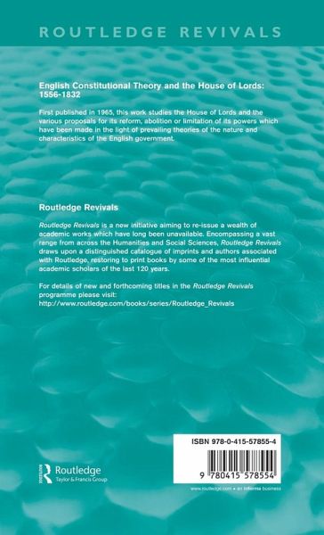 First published in 1965, this work studies the House of Lords and the various proposals for its reform, abolition or limitation of its powers which have been made in the light o f prevailing theories of the nature and characteristics of the English government. The work also contains a history of the theory of mixed government that arose in Tudor England and lasted until well after the Reform Act of 1832. This history both illuminates the position of the House of Lords and also provides perspective for the study of Democracy in the movement for parliamentary reform. One of the book's most original features is an extensive account of Charles I's Answer to the Nineteen Propostions, out of which came the startling new theory of the constitution, known as "mixed monarchy".