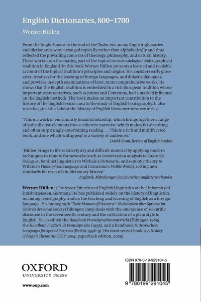From the Anglo-Saxons to the end of the Tudor era, many English glossaries and dictionaries were arranged topically rather than alphabetically and thus reflected the prevailing concerns of theology, philosophy, and natural history. These works are a fascinating part of the topical or onomasiological lexicographical tradition in England. In this book Werner Hüllen presents a learned and readable account of the topical tradition's principles and origins. He considers early