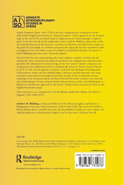 English Dramatick Opera, 1661-1706 is the first comprehensive examination of the distinctively English form known as "dramatick opera", which appeared on the London stage in the mid-1670s and lasted until its displacement by Italian through-composed opera in the first decade of the eighteenth century. Andrew Walkling argues that, while the musical elements of this form are crucial to its definition and history, the origins of the genre lie principally in a tradition of spectacular stagecraft that first manifested itself in England in the mid-1660s as part of a hitherto unidentified dramatic sub-genre, to which Walkling gives the name "spectacle-tragedy". Armed with this new understanding, the book explores a number of historical and interpretive issues, including the physical and rhetorical configurations of performative spectacle, the administrative maneuverings of the two "patent" theatre companies, the construction and deployment of the technologically advanced Dorset Garden Theatre in 1670-71, the critical response to generic, technical, and ideological developments in Restoration drama, and the shifting balance between machine spectacle and song-and-dance entertainment throughout the later decades of the seventeenth century, including in the dramatick operas of Henry Purcell. This study combines the materials and methodologies of music history, theatre history, literary studies, and bibliography to fashion an entirely new approach to the history of spectacular and musical drama on the English Restoration stage. This book serves as a companion to the Routledge publication Masque and Opera in England, 1656-1688 (2017).