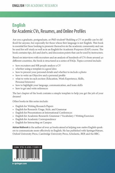 Are you a graduate, postgraduate or PhD student? Building a CV or profile can be difficult for anyone, but especially for those whose first language is not English. This book is essential for those looking to promote themselves in the academic community, and can be used both for self-study, as well as in an English for Academic Purposes (EAP) course. The book contains tips, do's and dont's, and discussion points that can be used by instructors.