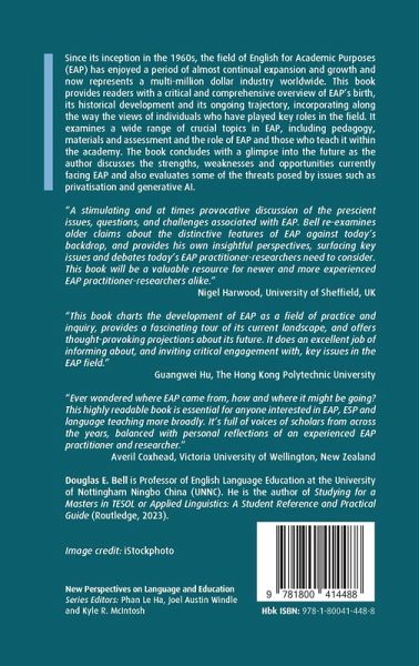 This book provides readers with a critical and comprehensive overview of the historical development and ongoing trajectory of English for Academic Purposes (EAP). It examines a wide range of crucial topics in EAP, concluding with a glimpse into the future as the author considers the threats posed by issues such as privatisation and generative AI.