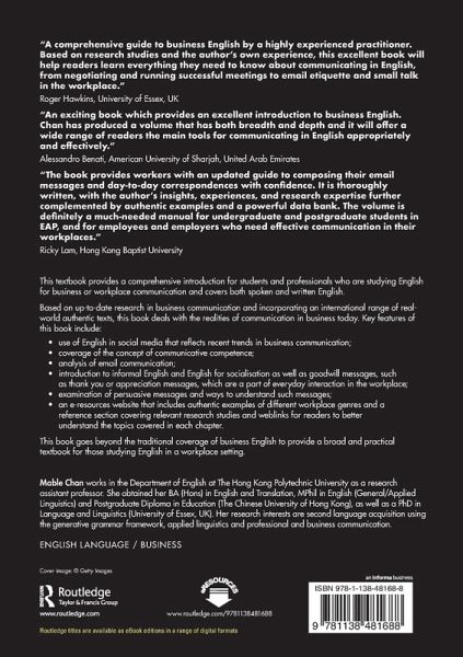 Drawing on state-of-the-art research in business communication, "English for Business Communication" addresses a wide range of topics such as communicative competence, English in social media, English for socialization, and everyday interaction in the workplace. It is a must-read book for those teaching and researching English for business or workplace communication.