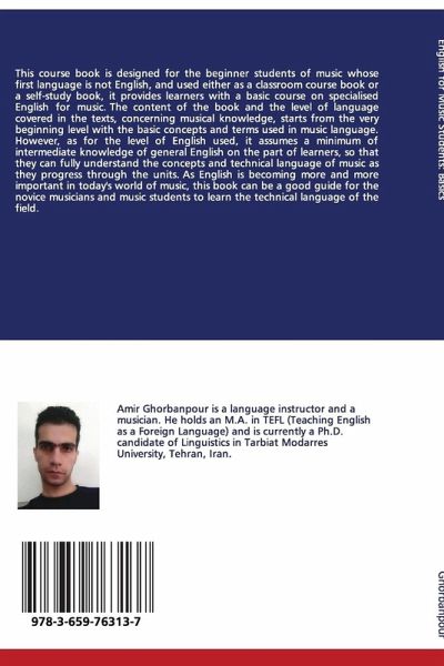 This course book is designed for the beginner students of music whose first language is not English, and used either as a classroom course book or a self-study book, it provides learners with a basic course on specialised English for music. The content of the book and the level of language covered in the texts, concerning musical knowledge, starts from the very beginning level with the basic concepts and terms used in music language. However, as for the level of English used, it assumes a minimum of intermediate knowledge of general English on the part of learners, so that they can fully understand the concepts and technical language of music as they progress through the units. As English is becoming more and more important in today's world of music, this book can be a good guide for the novice musicians and music students to learn the technical language of the field.