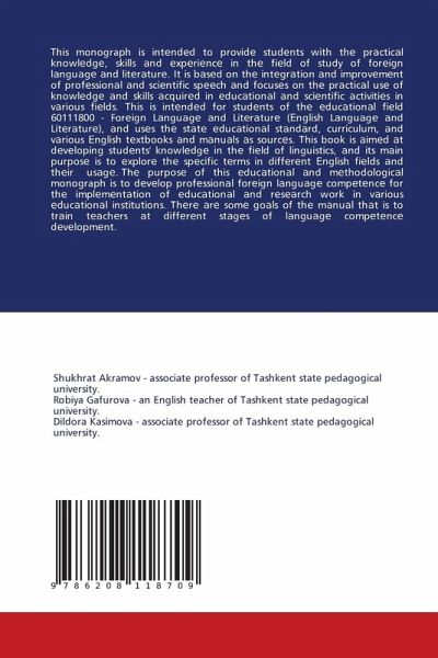 This monograph is int nd d to provid stud nts with th pr ctic l knowl dg , skills nd xp ri nc in th fi ld of study of for ign l ngu g nd lit r tur . It is b s d on th int gr tion nd improv m nt of prof ssion l nd sci ntific sp ch nd focus s on th pr ctic l us of knowl dg nd skills cquir d in duc tion l nd sci ntific ctiviti s in v rious fi lds. This is int nd d for stud nts of th duc tion l fi ld 60111800 - For ign L ngu g nd Lit r tur ( nglish L ngu g nd Lit r tur ), nd us s th st t duc tion l st nd rd, curriculum, nd v rious nglish t xtbooks nd m nu ls s sourc s. This book is im d t d v loping stud nts' knowl dg in th fi ld of linguistics, nd its m in purpos is to xplor th sp cific t rms in diff r nt nglish fi lds nd th ir us g . Th purpos of this duc tion l nd m thodologic l monograph is to d v lop prof ssion l for ign l ngu g comp t nc for th impl m nt tion of duc tion l nd r s rch work in v rious duc tion l institutions. Th r r som go ls of th m nu l th t is to tr in t ch rs t diff r nt st g s of l ngu g comp t nc d v lopm nt.