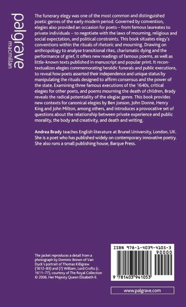 Acknowledgements List of Abbreviations Notes on Transcriptions Introduction The Ritual of Elegiac Rhetoric The Rhetoric of Grief The Funerary Ritual in its Ritual Context Spectacular Executions of the 1640s Contesting Wills in Critical Elegy Grief Without Measure Conclusion Notes Bibliography Index