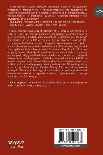 This book examines psycholinguistic elements of irregular verb morphology in English, using two empirical studies of young language learners in Austria to make evidence-based didactic recommendations for classroom use. The author first provides an up-to-date overview of the so-called past tense debate, encompassing the last four decades of linguistic, psycholinguistic, and cognitive research, before presenting an in-depth discussion of the notion of irregular and semi-regular verbal morphology in both German and English, with a focus on vowel change and apophony. Turning to his original research, he applies generalised linear mixed model analyses as well as conditional inference trees to the behavioural data, avoiding common pitfalls that come with traditional ANOVAs in repeated measure designs, and discusses the concrete implications of the experimental results on second language acquisition and instructed EFL teaching, with a focus on Input Processing. This book will be essential reading for SLA and applied linguistics researchers as well as graduate and postgraduate students in cognitive linguistics, psycholinguistics, and language acquisition.