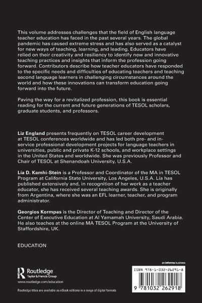 This volume addresses challenges that the field of English language teacher education has faced in the past several years. The global pandemic has caused extreme stress and has also served as a catalyst for new ways of teaching, learning, and leading. Educators have relied on their creativity and resiliency to identify new and innovative teaching practices and insights that inform the profession going forward. Contributors describe how teacher educators have responded to the specific needs and difficulties of educating teachers and teaching second language learners in challenging circumstances around the world and how these innovations can transform education going forward into the future.