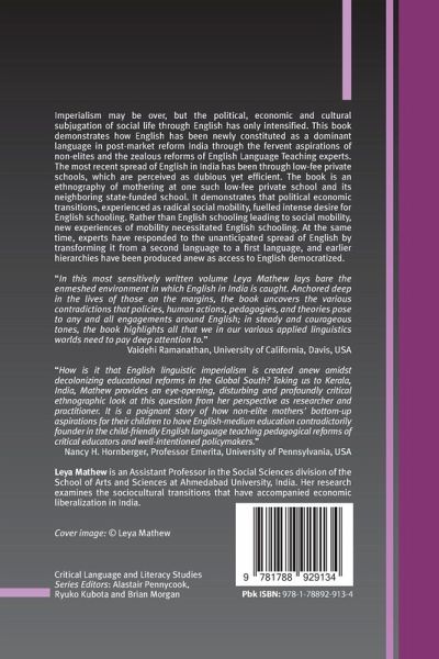 The book shows how English has been newly constituted as a dominant language in post-market reform India. Political economic transitions experienced as radical social mobility fuelled intense non-elite desire for English schooling. Rather than English schooling leading to social mobility, new experiences of mobility necessitated English schooling.