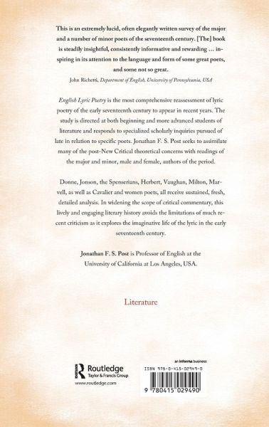 A comprehensive reassessment of lyric poetry of the early 17th century directed at beginning and more advanced students of literature. It seeks to assimilate many of the theoretical concerns with readings of the authors of the period.