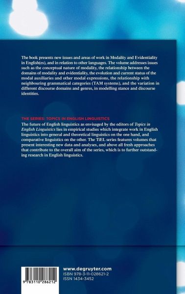 The book presents new issues and areas of work in modality and evidentiality in English(es), and in relation to other European languages (French, Galician, Lithuanian, Spanish). Given the complexity of the relations among modal and evidential expressions, their constant diachronic evolution, and the variation found in different English-speaking areas, and in different genres and discourse domains, the volume addresses the following issues: the conceptual nature of modality, the relationship between the domains of modality and evidentiality, the evolution and current status of the modal auxiliaries and other modal expressions, the relationship with neighbouring grammatical categories (tense, aspect, mood), and the variation in different discourse domains and genres, in modelling stance and discourse identities.