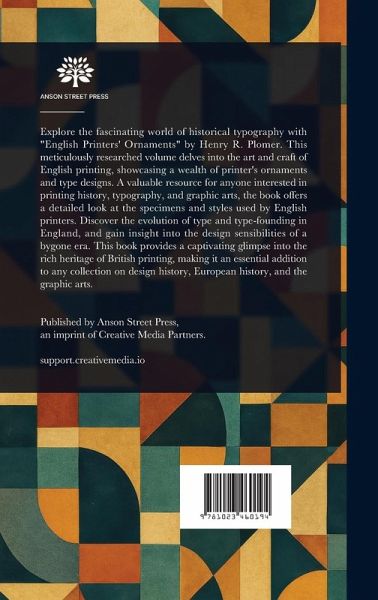 Explore the fascinating world of historical typography with "English Printers' Ornaments" by Henry R. Plomer. This meticulously researched volume delves into the art and craft of English printing, showcasing a wealth of printer's ornaments and type designs. A valuable resource for anyone interested in printing history, typography, and graphic arts, the book offers a detailed look at the specimens and styles used by English printers. Discover the evolution of type and type-founding in England, and gain insight into the design sensibilities of a bygone era. This book provides a captivating glimpse into the rich heritage of British printing, making it an essential addition to any collection on design history, European history, and the graphic arts. This work has been selected by scholars as being culturally important, and is part of the knowledge base of civilization as we know it. This work is in the public domain in the United States of America, and possibly other nations. Within the United States, you may freely copy and distribute this work, as no entity (individual or corporate) has a copyright on the body of the work. Scholars believe, and we concur, that this work is important enough to be preserved, reproduced, and made generally available to the public. We appreciate your support of the preservation process, and thank you for being an important part of keeping this knowledge alive and relevant.