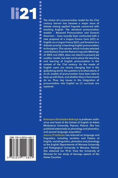 The choice of a pronunciation model for the 21st century learner has become a major issue of debate among applied linguists concerned with teaching English. The standard pronunciation models - Received Pronunciation and General American - have recently been confronted with a new proposal of a Lingua Franca Core (LFC) or English as a Lingua Franca (ELF), put forward as a didactic priority in teaching English pronunciation to foreigners. This volume, which includes selected contributions from the Poznan Linguistic Meetings of 2003 and 2004, does not intend to present yet another model, but sets out to place the teaching and learning of English pronunciation in the context of the 21st century. As the needs of English users are clearly changing fast in the globalizing world, the question is to what extent, if at all, models of pronunciation have been able to keep up with them, and whether they in fact should do so. Thus, key issues in the integration of pronunciation into English as L2 curricula are explored.