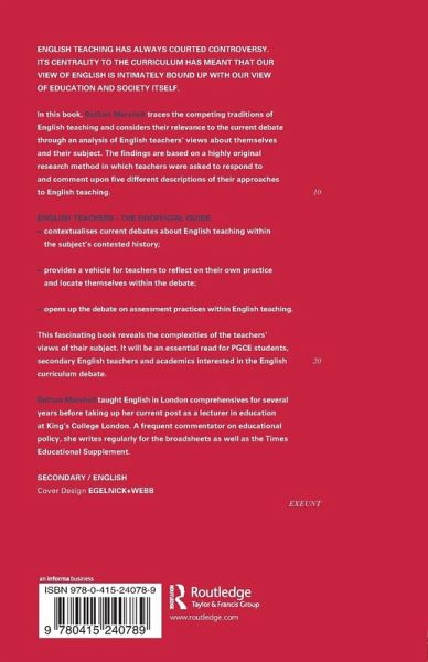Bethan Marshall traces the competing traditions of English teaching and considers their relevance to the current debate through an analysis of English teachers' views about themselves and their subject. The findings are based on a highly original research method in which teachers were asked to respond to and comment upon five different descriptions of their approaches to English teaching. English Teachers - The Unofficial Guide: *contextualises current debates about English teaching within the subject's contested history *provides a vehicle for teachers to reflect on their own practice and locate themselves within the debate *opens up the debate on assessment practices within English teaching.