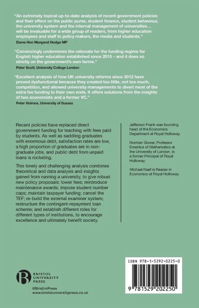 Student fees have saddled graduates with enormous debt, satisfaction rates are low, a high proportion of graduates are in non-graduate jobs, and public debt from unpaid loans is rocketing. This timely and challenging analysis gives robust new policy proposals to encourage excellence and ultimately benefit society.