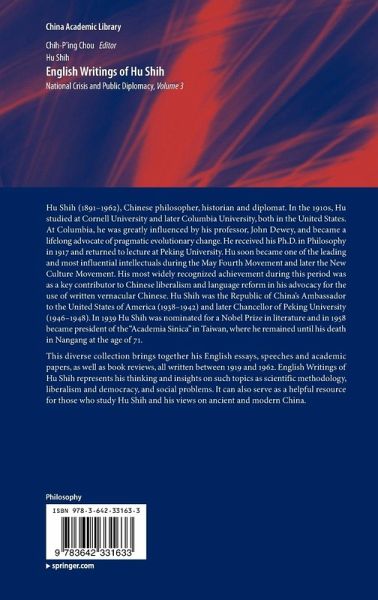 Hu Shih (1891-1962), Chinese philosopher, historian and diplomat. In the 1910s, Hu studied at Cornell University and later Columbia University, both in the United States. At Columbia, he was greatly influenced by his professor, John Dewey, and became a lifelong advocate of pragmatic evolutionary change. He received his Ph.D. in Philosophy in 1917 and returned to lecture at Peking University. Hu soon became one of the leading and most influential intellectuals during the May Fourth Movement and later the New Culture Movement. His most widely recognized achievement during this period was as a key contributor to Chinese liberalism and language reform in his advocacy for the use of written vernacular Chinese. Hu Shih was the Republic of China¡¯s Ambassador to the United States of America (1938¨C1942) and later Chancellor of Peking University (1946¨C1948). In 1939 Hu Shih was nominated for a Nobel Prize in literature and in 1958 became president of the ¡°Academia Sinica¡± in Taiwan, where he remained until his death in Nangang at the age of 71.This diverse collection brings together his English essays, speeches and academic papers, as well as book reviews, all written between 1919 and 1962. English Writings of Hu Shih represents his thinking and insights on such topics as scientific methodology, liberalism and democracy, and social problems. It can also serve as a helpful resource for those who study Hu Shih and his views on ancient and modern China.