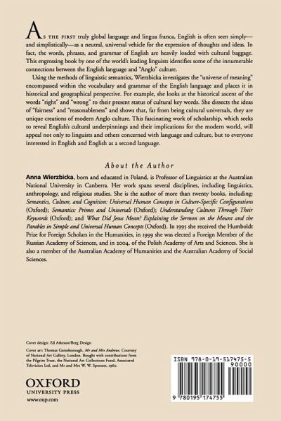 Wierzbicka, a distinguished linguist known for her theories of semantics, has written the first book that connects the English language with what she terms "Anglo" culture. Wierzbicka points out that language and culture are not just interconnected, but inseparable. This is evident to non-speakers trying to