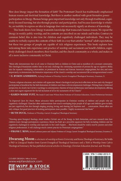How does liturgy impact the formation of faith? The Protestant Church has traditionally emphasized human reason and doctrinal knowledge. But there is another method with great formative power--participation in liturgy. Human beings gain important knowledge not only through traditional, cognitively focused learning, but also through practice and participation. And because knowledge is wholistic, an inability to express an idea in language does not necessarily signify an absence of knowledge. This book shows how liturgy transmits knowledge that transcends human reason. We repeat the liturgy in weekly public worship, and its contents are inscribed on our minds and bodies. Contrary to common belief, this is also true for children and cognitively challenged individuals. They may be unable to verbally express the contents of their faith in a way that satisfies ""normal"" adult expectations, but these two groups of people are capable of rich religious experiences. This book explores how welcoming them into experience and practice of worship and sacrament can benefit children, cognitively challenged church members, their families, and the church community as a whole, and makes us all a more inclusive community in Christ.