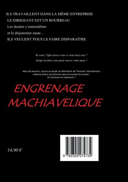 ILS TRAVAILLENT DANS LA MÊME ENTREPRISELE DIRIGEANT EST UN BOURREAULes destins s'entremêlent et le disjoncteur saute.ILS VEULENT TOUS LE FAIRE DISPARAÎTREEt vous, que feriez-vous si vous étiez eux ?Jusqu'où iriez-vous pour sauver votre peau ?Abus de pouvoir, course au profit au détriment de l'humain, harcèlement, violence faites aux femmes dans le monde du travail.En sortiront il indemnes ?