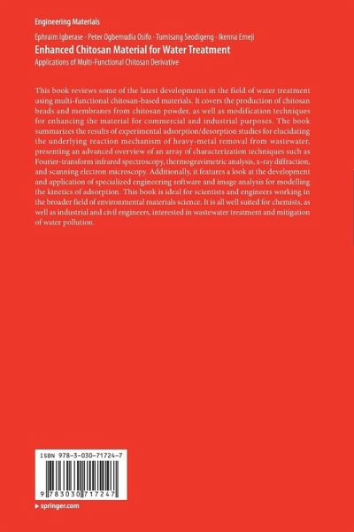 This book reviews some of the latest developments in the field of water treatment using multi-functional chitosan-based materials. It covers the production of chitosan beads and membranes from chitosan powder, as well as modification techniques for enhancing the material for commercial and industrial purposes. The book summarizes the results of experimental adsorption/desorption studies for elucidating the underlying reaction mechanism of heavy-metal removal from wastewater, presenting an advanced overview of an array of characterization techniques such as Fourier-transform infrared spectroscopy, thermogravimetric analysis, x-ray diffraction, and scanning electron microscopy. Additionally, it features a look at the development and application of specialized engineering software and image analysis for modelling the kinetics of adsorption. This book is ideal for scientists and engineers working in the broader field of environmental materials science. It is all well suited for chemists, as well as industrial and civil engineers, interested in wastewater treatment and mitigation of water pollution