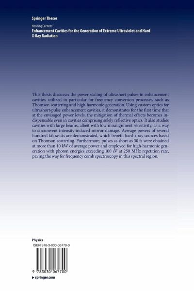 This thesis discusses the power scaling of ultrashort pulses in enhancement cavities, utilized in particular for frequency conversion processes, such as Thomson scattering and high-harmonic generation. Using custom optics for ultrashort-pulse enhancement cavities, it demonstrates for the first time that at the envisaged power levels, the mitigation of thermal effects becomes indispensable even in cavities comprising solely reflective optics. It also studies cavities with large beams, albeit with low misalignment sensitivity, as a way to circumvent intensity-induced mirror damage. Average powers of several hundred kilowatts are demonstrated, which benefit hard x-ray sources based on Thomson scattering. Furthermore, pulses as short as 30 fs were obtained at more than 10 kW of average power and employed for high-harmonic generation with photon energies exceeding 100 eV at 250 MHz repetition rate, paving the way for frequency comb spectroscopy in this spectral region.
