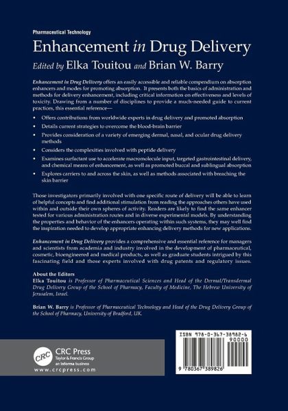 Enhancement in Drug Delivery offers an accessible compendium covering a wide spectrum of methods to enhance drug delivery and absorption by various routes of administration. Drawing from a number of disciplines, it gives students and practitioners in pharmaceutics, medicine, and health-related disciplines a much-needed guide to current practices. It also provides a starting place for those working on delivery systems for new drugs or seeking to improve current systems by drawing on means applied in other routes. Organized by routes of delivery, the book covers oral, rectal, buccal and sublingual, dermal and transdermal, ocular, vaginal and uterine, nasal and brain administrations.