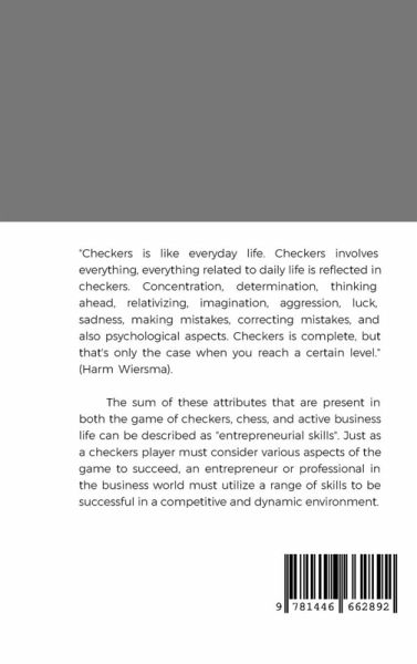 "Checkers is like everyday life. Checkers involves everything, everything related to daily life is reflected in checkers. Concentration, determination, thinking ahead, relativizing, imagination, aggression, luck, sadness, making mistakes, correcting mistakes, and also psychological aspects. Checkers is complete, but that's only the case when you reach a certain level." (Harm Wiersma). The sum of these attributes that are present in both the game of checkers, chess, and active business life can be described as "entrepreneurial skills". Just as a checkers player must consider various aspects of the game to succeed, an entrepreneur or professional in the business world must utilize a range of skills to be successful in a competitive and dynamic environment.