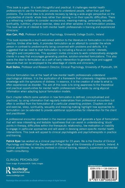 Each chapter reflects some variation in how formulation is defined, conceptualised and practiced, by using information that regularly materializes from professional encounters but often is omitted from the formulation of a particular presenting problem. Chapters on diet and exercise, sleep, spirituality, sexuality and meaning-making highlight how approaches to formulation can be extended to provide additional opportunities for intervention for the client andpractitioner.