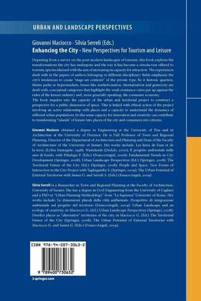 Enhancing the City: New Perspectives for Tourism and Leisure.- Enhancing the City: New Perspectives for Tourism and Leisure.- Leisure and Construction of Urban Consciousness.- Places for Leisure: Places for City.- Places for Leisure as Interactive Space of the City.- Urban Tourist Precincts as Sites of Play.- Authentic Places, Simulacrum Places.- The Tourist City, the Dream and the Reversal of Time.- Disney-ality and Forgetfulness: the Eu-topia of a Consolatory Place.- Creative Places and Cultural Matrices of the City.- Creativity of Places as a Resource for Cultural Tourism.- Historico-Cultural Sustainability and Urban Dynamics.- Leisure and Privatisation of Public Space.- Spaces of Consumption.- Shopping as an Urban Leisure Activity.- Urban Tourism and Hybrid Spaces.- Questioning the Urban in Urban Tourism.- The Ambivalent Space(s) of Tourism in Italian Colonial Libya.- Waterfront Retrieved: Buenos Aires' Contrasting Leisure Experience.- Urban Populations and Rights of Citizenship.- Which Tourisms? Which Territories?.- Tourist Populations.- Tourism and Local Participation: What about the Citizens?.