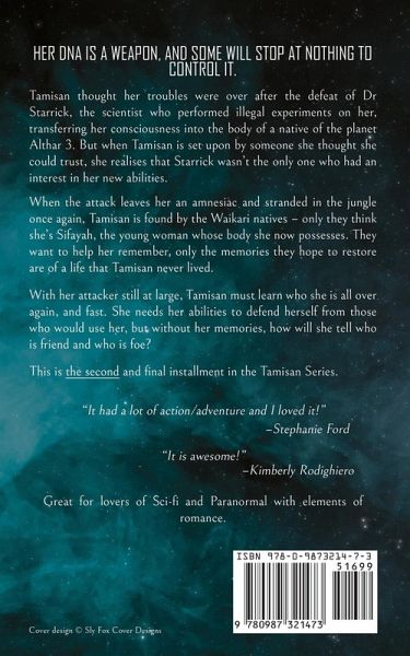 Her DNA is a weapon, and some will stop at nothing to control it. Tamisan thought her troubles were over after the defeat of Dr Starrick, the scientist who performed illegal experiments on her, transferring her consciousness into the body of a native of the planet Althar 3. But when Tamisan is set upon by someone she thought she could trust, she realises that Starrick wasn't the only one who had an interest in her new abilities. When the attack leaves her an amnesiac and stranded in the jungle once again, Tamisan is found by the Waikari natives - only they think she's Sifayah, the young woman whose body she now possesses. They want to help her remember, only the memories they hope to restore are of a life that Tamisan never lived. With her attacker still at large, Tamisan must learn who she is all over again, and fast. She needs her abilities to defend herself from those who would use her, but without her memories, how will she tell who is friend and who is foe? **Grab your copy today and immerse yourself in Zhenna's wild journey** ENIGMA is an exciting second (and final) book in the Tamisan Series that will transport sci-fi and paranormal fans to a fascinating world on the outskirts of the Known Universe, filled with suspense, danger, and romance. Binge the COMPLETE Tamisan Series! Tamisan Enigma A Tamisan Novella: Shakiran: Larissa's Story Check out the COMPLETE Lightning Touch Series! Touch of Lightning Power of Lightning "It is awesome!" - Kimberly Rodighiero "This book pretty much picks up where book 1 left off and wowzers what a crazy story! Page 1 through the end is a page turner I couldn't put down! I loved this story." - Stephanie (Goodreads Review)