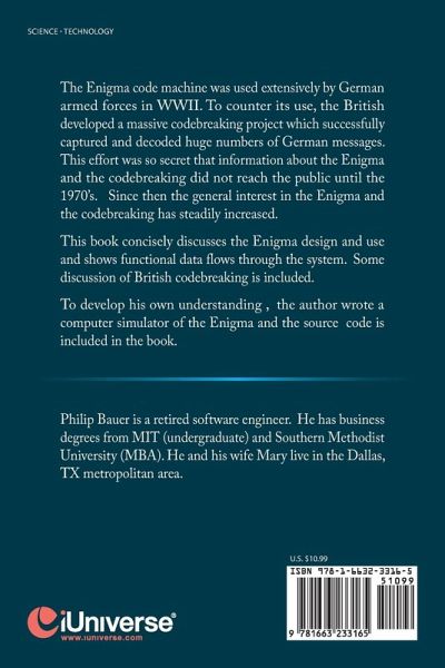 The Enigma code machine was used extensively by German armed forces in WWII. To counter its use, the British developed a massive codebreaking project which successfully captured and decoded huge numbers of German messages. This effort was so secret that information about the Enigma and the codebreaking did not reach the public until the 1970's. Since then the general interest in the Enigma and the codebreaking has steadily increased. This book concisely discusses the Enigma design and use and shows functional data flows through the system. Some discussion of British codebreaking is included. To develop his own understanding , the author wrote a computer simulator of the Enigma and the source code is included in the book.