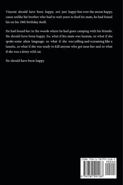 Vincent should have been happy, not just happy but over the moon happy, cause unlike his brother who had to wait years to find his mate, he had found his on his 18th birthday itself. He had found her in the woods where he had gone camping with his friends. He should have been happy. So, what if his mate was human, so what if she spoke some alien language, so what if she was yelling and screaming like a lunatic, so what if she was ready to kill anyone who got near her and so what if she was a feisty wild cat. He should have been happy.