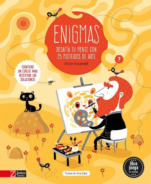 Los enigmas de Víctor Escandell y Ana Gallo que entusiasman a nuestros jóvenes lectores se trasladan esta vez al mundo del arte. Entre esculturas renacentistas y pinturas futuristas, hay siempre un misterio que nuestros incansables seguidores deberán resolver con lógica e imaginación. Cada enigma nos sumerge en un momento importante de la historia del arte o en el entorno de un artista destacado. Resolviendo los misterios aprenderemos pinceladas sobre los principales movimientos artísticos y conoceremos técnicas, personajes y curiosidades. La sección ¡VIVE Y EXPERIMENTA EL ARTE! propone divertidas actividades al final del libro. Llega el momento de convertirte en artista, desarrollar un estilo y plasmarlo en tus propias obras de arte para aprender practicando. El libro incluye un espejo con el que se podrán descifrar los textos de las soluciones de los enigmas, presentados en escritura especular, a la manera del genial Leonardo.