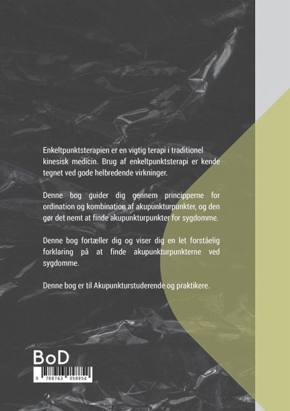 Enkeltpunktsterapien er en vigtig terapi i traditionel kinesisk medicin. Brug af enkeltpunktsterapi er kende tegnet ved gode helbredende virkninger. Denne bog guider dig gennem principperne for ordination og kombination af akupunkturpunkter, og den gør det nemt at finde akupunkturpunkter for sygdomme. Denne bog fortæller dig og viser dig en let forståelig forklaring på at finde akupunkturpunkterne ved sygdomme. Denne bog er til Akupunkturstuderende og praktikere.