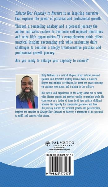 Uncover Your Potential: Embrace Growth and Open Doors to New Opportunities. Expand Your Ability to Welcome Abundance, Joy, and Success in Every Aspect of Life. Enlarge Your Capacity to Receive is a poignant narrative that unveils personal and professional growth potential. Through an engaging conversation, author Kelly Williams introduces us to the compelling notion of broadening our capability to welcome life's blessings. The author presents a powerful analogy, comparing our limited selves to a water bottle attempting to hold an Olympic-sized pool. We are made to realize that it is within our power to overcome these self-imposed constraints and fully engage with the opportunities life throws our way. This transformative journey might bring discomfort, but it's through this unease that we mature and develop. The lesson of openness to new ideas and learning experiences is demonstrated through the author's struggle to accept his children's autism diagnosis. Finally acknowledging it made many support services and opportunities accessible, greatly benefiting his children. Enlarge Your Capacity to Receive extends this concept to realms of business and investment, emphasizing the need for an abundance-oriented mindset. It challenges readers to adopt this mindset in grand endeavors and everyday interactions-whether building stronger relationships, seeking growth at work, or simply embracing new possibilities with courage and hope. This comprehensive guide enhances and transforms all our lives, offering practical insights that help us navigate daily challenges with resilience and purpose. It's a potent call to action, inspiring us to embark on a deeply transformative personal and professional growth journey. So, are you ready to enlarge your capacity to receive?