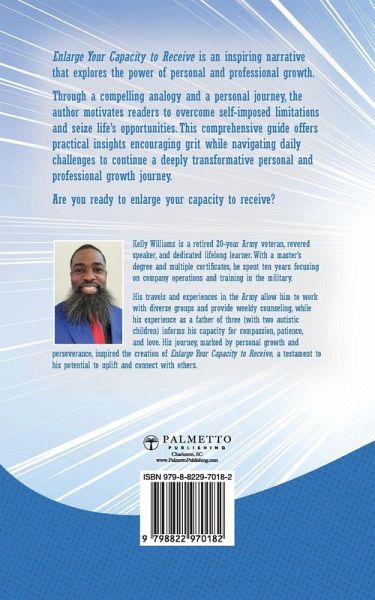 Uncover Your Potential: Embrace Growth and Open Doors to New Opportunities. Expand Your Ability to Welcome Abundance, Joy, and Success in Every Aspect of Life. Enlarge Your Capacity to Receive is a poignant narrative that unveils personal and professional growth potential. Through an engaging conversation, author Kelly Williams introduces us to the compelling notion of broadening our capability to welcome life's blessings. The author presents a powerful analogy, comparing our limited selves to a water bottle attempting to hold an Olympic-sized pool. We are made to realize that it is within our power to overcome these self-imposed constraints and fully engage with the opportunities life throws our way. This transformative journey might bring discomfort, but it's through this unease that we mature and develop. The lesson of openness to new ideas and learning experiences is demonstrated through the author's struggle to accept his children's autism diagnosis. Finally acknowledging it made many support services and opportunities accessible, greatly benefiting his children. Enlarge Your Capacity to Receive extends this concept to realms of business and investment, emphasizing the need for an abundance-oriented mindset. It challenges readers to adopt this mindset in grand endeavors and everyday interactions-whether building stronger relationships, seeking growth at work, or simply embracing new possibilities with courage and hope. This comprehensive guide enhances and transforms all our lives, offering practical insights that help us navigate daily challenges with resilience and purpose. It's a potent call to action, inspiring us to embark on a deeply transformative personal and professional growth journey. So, are you ready to enlarge your capacity to receive?