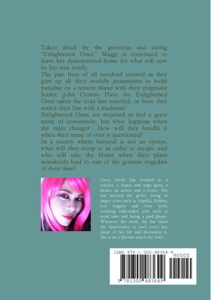 Taken aback by the generous and caring "Enlightened Ones," Maggi is convinced to leave her dysfunctional home for what will now be her true family. The past lives of all involved unravel as they give up all their worldly possessions to build paradise on a remote island with their enigmatic leader, John Cronus. Have the Enlightened Ones taken the road less traveled, or have they sealed their fate with a madman? Enlightened Ones are required to feel a great sense of community, but what happens when the rules change? How will they handle it when their sense of trust is questioned? In a society where betrayal is not an option, what will they stoop to in order to escape, and who will take the blame when their plans mistakenly lead to one of the greatest tragedies of their time?