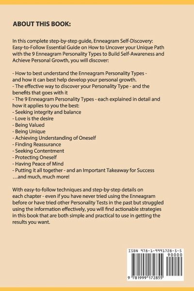Do You want to discover more about yourself for self-awareness and personal growth? Would you like to know how to understand others better for success in relationships and at the workplace? If so, read on... Being able to know oneself better on why they think, feel and act a certain way offer many benefits because not only does this boost one's personal success, it could also improve on their relationship with others. And while personality tests such as the Myers-Briggs could assist on this goal, another option one could check out is called The "Enneagram of Personality" or "Enneagram". The Enneagram is an ancient personality tool that features nine interconnected personality types. Finding out more about these types can uncover one's unique path towards self-discovery and personal growth. The key is finding a simple and easy-to-follow Enneagram guide with practical strategies to help you achieve on becoming your best self. In this complete step-by-step guide, Enneagram Self-Discovery: Easy-to-Follow Essential Guide on How to Uncover your Unique Path with the 9 Enneagram Personality Types to Build Self-Awareness and Achieve Personal Growth, you will discover: How to best understand the Enneagram Personality Types - and how it can best help develop your personal growth. The effective way to discover your Personality Type - and the benefits that goes with it The 9 Enneagram Personality Types - each explained in detail and how it applies to you the best: Seeking integrity and balance Love is the desire Being Valued Being Unique Achieving Understanding of Oneself Finding Reassurance Seeking Contentment Protecting Oneself Having Peace of Mind Putting it all together - and an Important Takeaway for Success …and much, much more! Added BONUSES: - Bonus 1: Includes a Bonus Chapter: "How to Apply your Personality Type to your Relationships" - Bonus 2: Includes a Free Book Preview: "How to Analyze People Effectively" With easy-to-follow techniques and step-by-step details on each chapter - even if you have never tried using the Enneagram before or have tried other Personality Tests in the past but struggled using the information effectively, you will find actionable strategies in this book that are both simple and practical to use in getting the results you want. So if you want to discover more about yourself and others using an easy-to-follow Enneagram guide, simply click on the "Buy Now" button to get started.