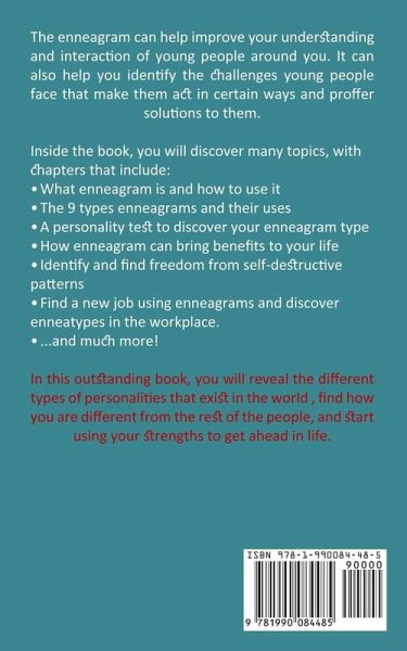 The enneagram can help improve your understanding and interaction of young people around you. It can also help you identify the challenges young people face that make them act in certain ways and proffer solutions to them. Inside the book, you will discover many topics, with chapters that include: ¿ What enneagram is and how to use it ¿ The 9 types enneagrams and their uses ¿ A personality test to discover your enneagram type ¿ How enneagram can bring benefits to your life ¿ Identify and find freedom from self-destructive patterns ¿ Find a new job using enneagrams and discover enneatypes in the workplace. ¿ ...and much more! In this outstanding book, you will reveal the different types of personalities that exist in the world , find how you are different from the rest of the people, and start using your strengths to get ahead in life.
