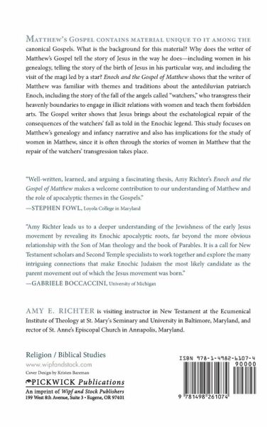 Matthew's Gospel contains material unique to it among the canonical Gospels. What is the background for this material? Why does the writer of Matthew's Gospel tell the story of Jesus in the way he does--including women in his genealogy, telling the story of the birth of Jesus in his particular way, and including the visit of the magi led by a star? Enoch and the Gospel of Matthew shows that the writer of Matthew was familiar with themes and traditions about the antediluvian patriarch Enoch, including the story of the fall of the angels called "watchers," who transgress their heavenly boundaries to engage in illicit relations with women and teach them forbidden arts. The Gospel writer shows that Jesus brings about the eschatological repair of the consequences of the watchers' fall as told in the Enochic legend. This study focuses on Matthew's genealogy and infancy narrative and also has implications for the study of women in Matthew, since it is often through the stories of women in Matthew that the repair of the watchers' transgression takes place.