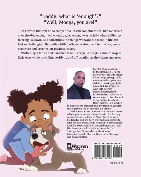 "Daddy, what is 'enough'?""Well, Mooga, you are!" In a world that can be so competitive, it can sometimes feel like we aren't enough-big enough, old enough, good enough-especially when bullies try to bring us down. And sometimes the things we want the most in life can feel so challenging. But with a little faith, dedication, and hard work, we can persevere and become our greatest selves. Written by a father and daughter team, Enough Is Enough, is sure to inspire little ones while providing positivity and affirmation as they learn and grow.