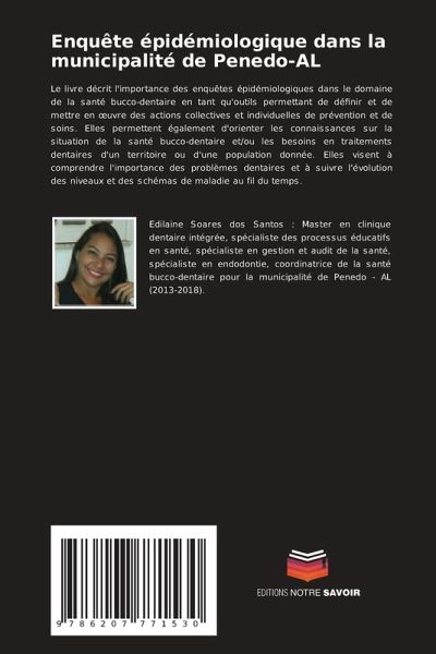 Le livre décrit l'importance des enquêtes épidémiologiques dans le domaine de la santé bucco-dentaire en tant qu'outils permettant de définir et de mettre en oeuvre des actions collectives et individuelles de prévention et de soins. Elles permettent également d'orienter les connaissances sur la situation de la santé bucco-dentaire et/ou les besoins en traitements dentaires d'un territoire ou d'une population donnée. Elles visent à comprendre l'importance des problèmes dentaires et à suivre l'évolution des niveaux et des schémas de maladie au fil du temps.