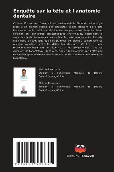 Ce livre offre une vue d'ensemble de l'anatomie de la tête et de l'odontologie grâce à un examen détaillé des structures et des fonctions de la tête humaine et de la cavité buccale. L'auteur se penche sur la recherche et l'examen des principales caractéristiques anatomiques, notamment le crâne, les dents, les muscles, les nerfs et les vaisseaux sanguins. Le texte est émaillé d'illustrations et de diagrammes qui aident à comprendre les relations complexes entre les différentes structures. Ce livre est une ressource précieuse pour les étudiants et les professionnels dans les domaines de l'odontologie, de la médecine et de l'anatomie, car il offre une exploration approfondie des détails complexes de l'anatomie de la tête et de l'odontologie.