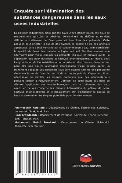 La pollution industrielle, ainsi que les eaux usées domestiques, les eaux de ruissellement agricoles et urbaines, contaminent les rivières et rendent difficile le traitement de l'eau pour éliminer tous les polluants. Cette pollution peut affecter la qualité des rivières, la qualité de vie des animaux aquatiques et la santé humaine par la consommation d'eau. Afin d'améliorer la qualité de l'eau, les nanotechnologies ont été étudiées comme une alternative pour mieux éliminer les polluants tels que les métaux lourds, la séparation des eaux huileuses et l'activité antimicrobienne. En outre, avec l'augmentation de l'industrialisation et la pollution des rivières, l'eau de mer peut être une source alternative intéressante d'eau potable après un traitement adéquat. Les nanomatériaux sont étudiés comme une possibilité d'éliminer le sel de l'eau de mer et de la rendre potable. Cependant, il est nécessaire de clarifier les risques potentiels que ces nanomatériaux peuvent causer à l'environnement. L'objectif de cette étude est donc de décrire l'application des nanotechnologies dans le traitement des eaux usées en ce qui concerne les métaux, l'élimination du pétrole de l'eau, l'activité antimicrobienne et le dessalement afin d'améliorer la qualité de l'eau et d'examiner les risques potentiels pour l'environnement.