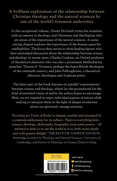 In this exceptional volume, Alister McGrath writes for scientists with an interest in theology, and Christians and theologians who are aware of the importance of the natural sciences. A scene-setting chapter explores the importance of the human quest for intelligibility. The focus then moves to three leading figures who have stimulated discussion about the relationship between science and theology[LC1] in recent years: Charles Coulson, an Oxford professor of theoretical chemistry who was also a prominent Methodist lay preacher; Thomas F. Torrance, perhaps the finest British theologian of the twentieth century; and John Polkinghorne, a theoretical physicist, theologian and Anglican priest. The latter part of the book features six parallel 'conversations' between science and theology, which lay the groundwork for the kind of enriched vision of reality the author hopes to encourage. Here, we are inspired to enjoy individual aspects of nature while seeking to interpret them in the light of deeper revelations about our gloriously strange universe. 'Enriching our Vision of Reality is elegant, erudite, and animated by a constant enthusiasm for its subject. There is everything here - science, theology, philosophy, biography, even some poetry - all enlisted to help us to see the world as it is, both more clearly and with greater delight.' The Revd Dr Andrew Davison, Starbridge Lecturer in Theology and Natural Sciences, University of Cambridge, and Fellow in Theology at Corpus Christi College