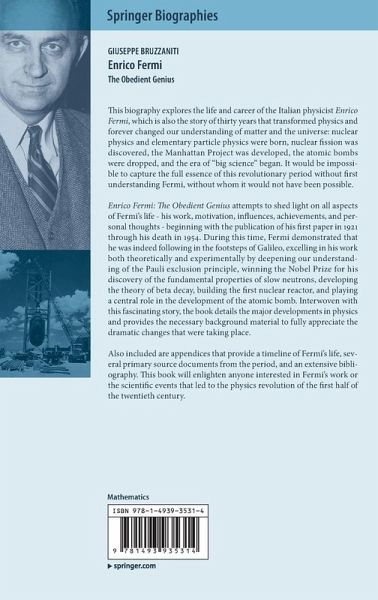 This biography explores the life and career of the Italian physicist Enrico Fermi, which is also the story of thirty years that transformed physics and forever changed our understanding of matter and the universe: nuclear physics and elementary particle physics were born, nuclear fission was discovered, the Manhattan Project was developed, the atomic bombs were dropped, and the era of "big science" began.It would be impossible to capture the full essence of this revolutionary period without first understanding Fermi, without whom it would not have been possible.